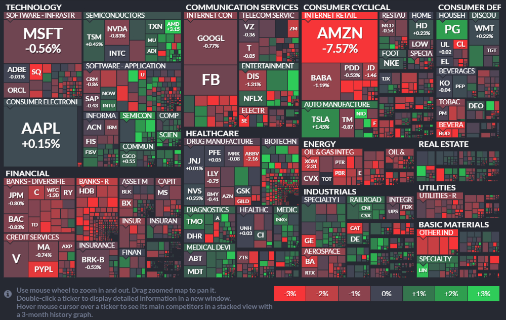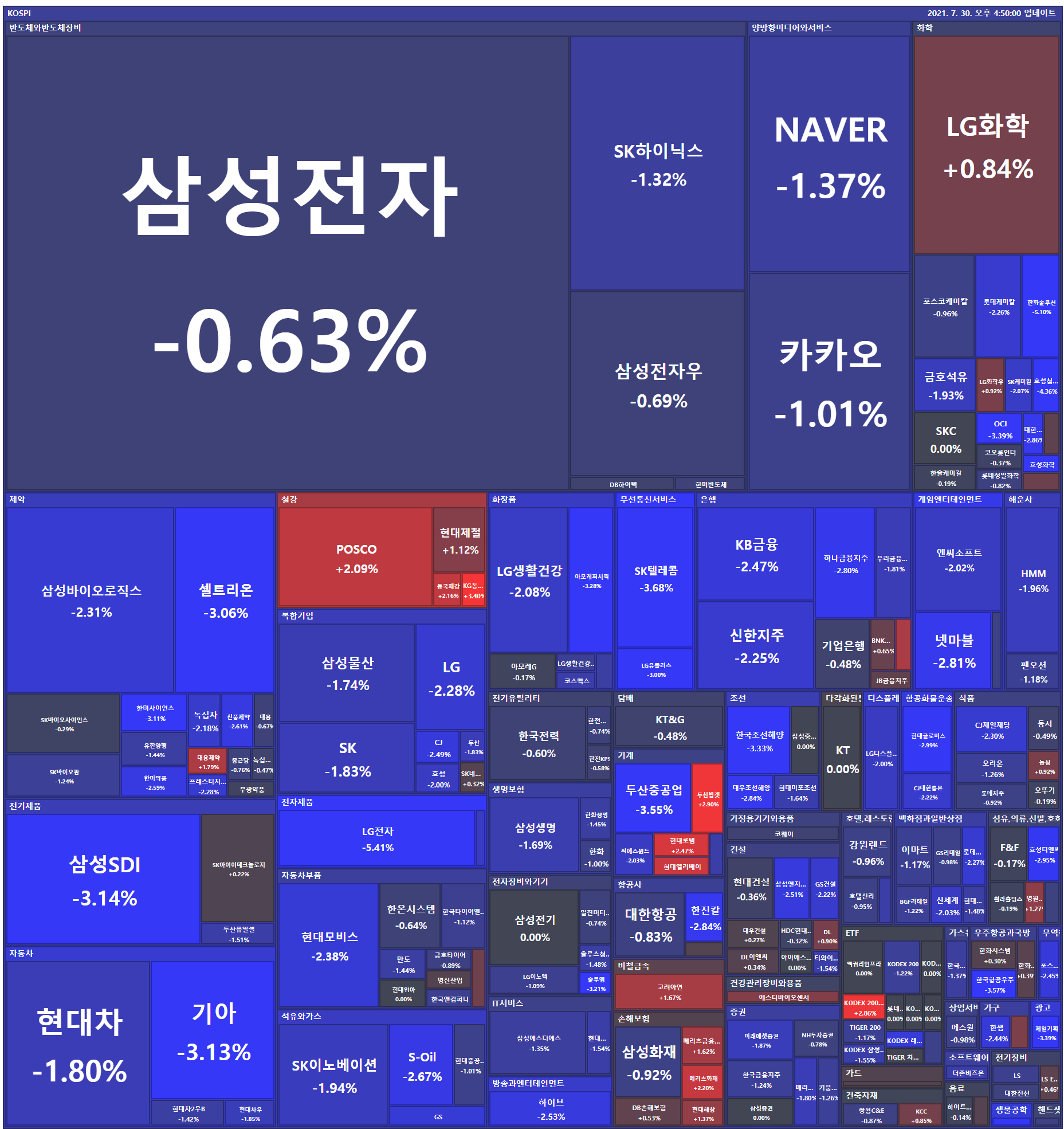 미국 증시는 예상치를 하회한 아마존(AMZN) 실적에 하락 마감. 전일 장 마감 후 실적을 발표한 아마존의 실적은 FAAMG 중 유일하게 매출액이 컨센서스를 밑돌았으며 매출액 증가율도 둔화한 것으로 나타나 금일 7% 하락해 2020년 5월 이후 일일 최대 하락 폭 기록. 이로써 금주 진행된 FAAMG 실적 결과, 시장은 이들 기업 대부분이 어닝 서프라이즈를 기록했지만 알파벳(GOOGL)을 제외한 기업에서 성장, 매출액 둔화 이슈가 존재함을 확인하였으며, 경제 회복이 둔화될 것이란 시장의 우려가 금일 증시 하방 압력으로 작용한 모습. 금일 상승 업종으로는 시장의 투자 심리가 위축되며 헬스케어, 부동산과 같은 경기방어주가 오름세를 시현하였으며, 달러화는 강세 시현. 한편, 금일 발표된 근원 PCE는 전년대비 3.5% 증가해 30년래 최고치를 기록. 다만 예상치(3.6%)를 소폭 밑돌았으며, 6월 개인소비지출은 전월비 1.0% 올라 예상치(+0.7%)를 상회.