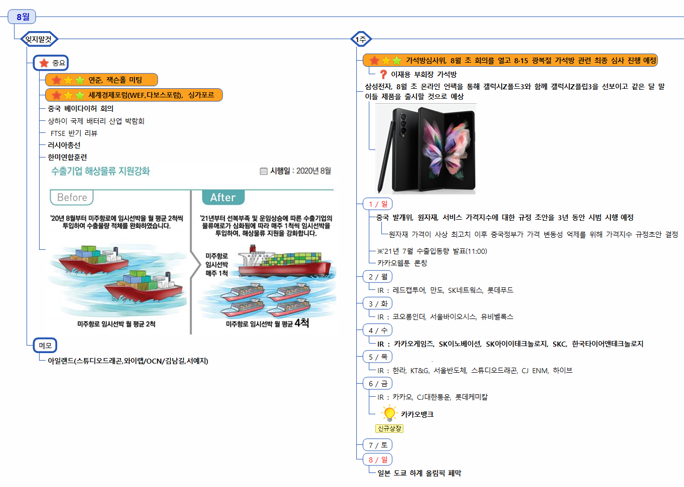 이번 주 미국 증시는 7월 고용보고서를 기다리면서도 미국 내의 빠른 코로나19 델타 변이 바이러스 확산세에 초점이 맞춰져 있다. 7월에도 강한 고용 증가세가 나타난다면 시장은 테이퍼링(자산매입축소) 발표 가능성을 주가에 반영할 것으로 예상된다.
