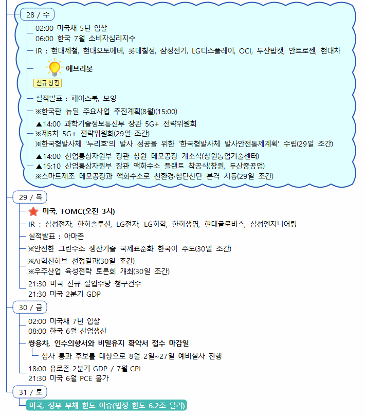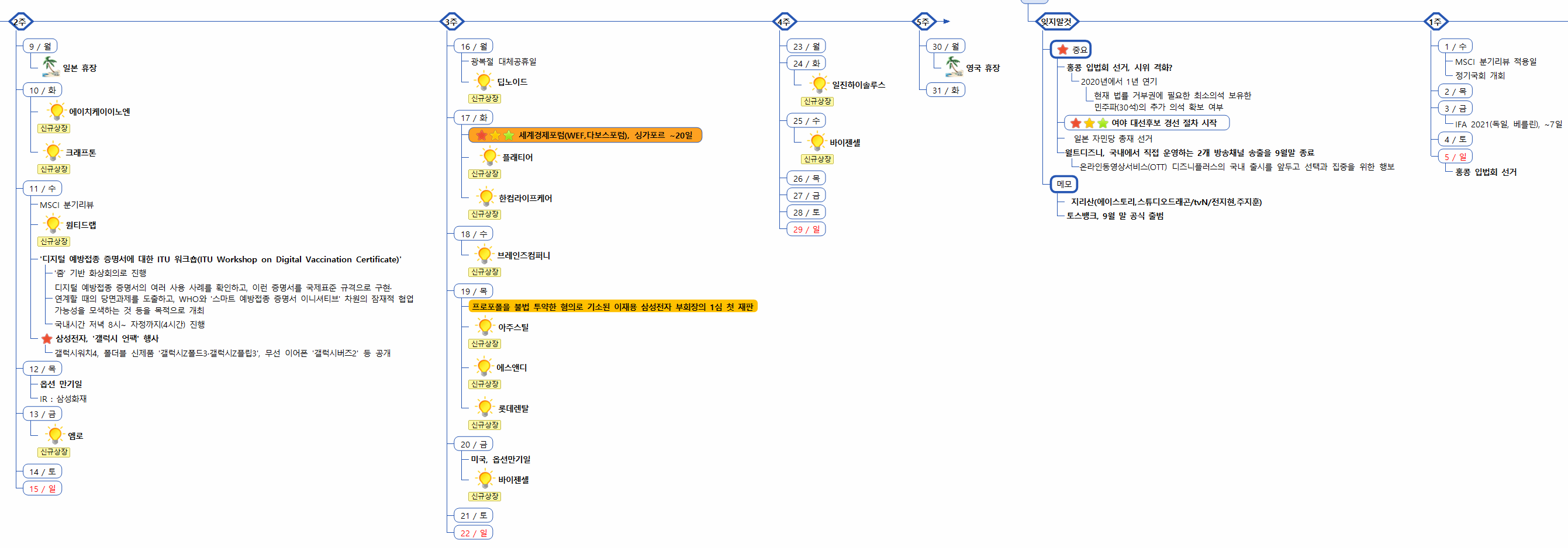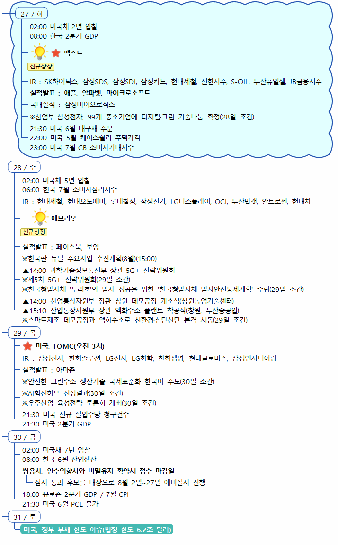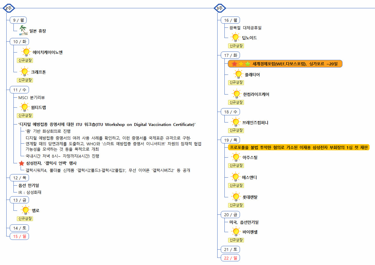 1) 증시캘린더는 개인적으로 관련된 소식을 확인후 작성한 일정이라 변동 또는 오류의 소지가 있습니다.