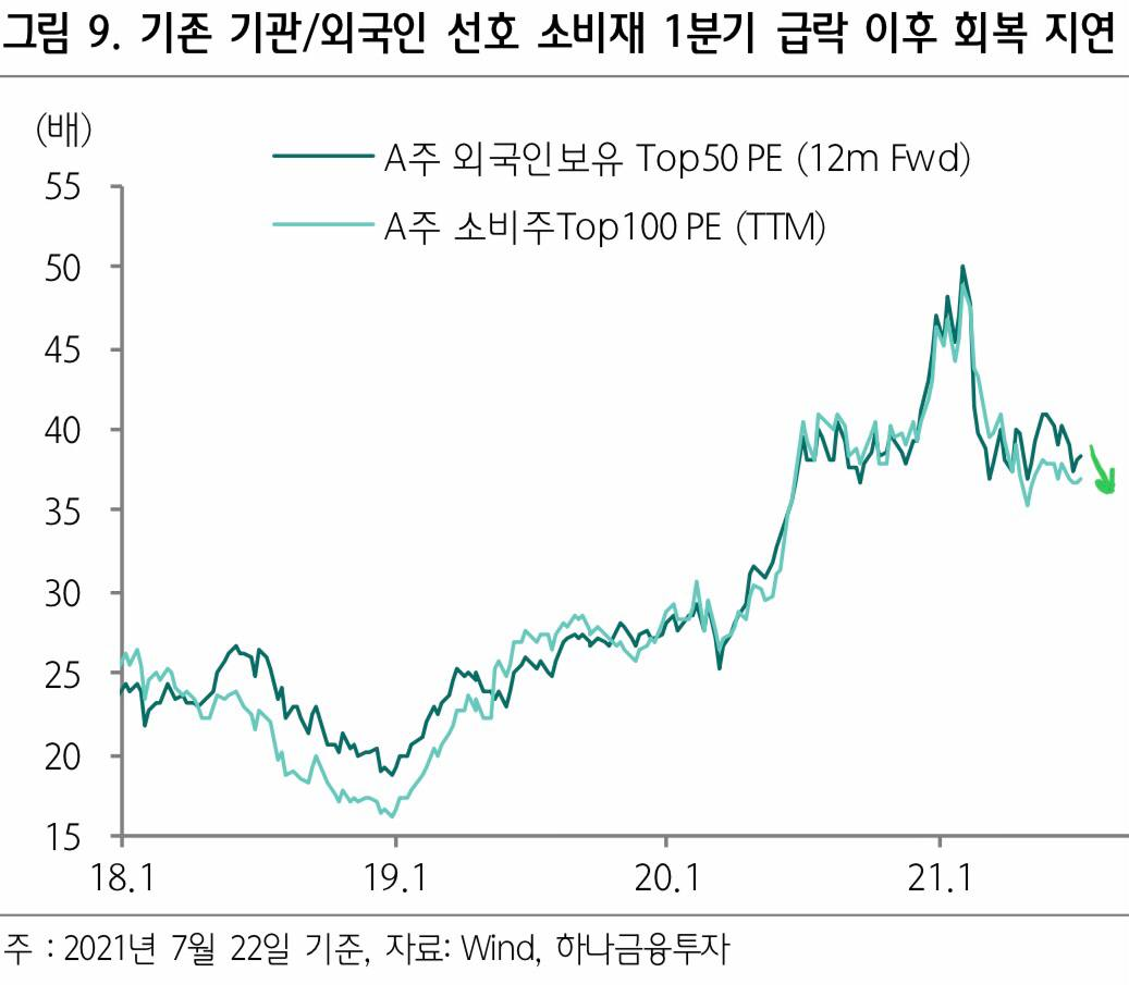 •해당 업종군 대다수가 1)B2C 소비업종, 2)강자독식과 고마진 1등주 출연, 3)2016년 이후 5년간 기관/외국인 수급 집중, 4)고PER 특징을 가지고 있습니다. 시장이 단순히 반독점법, 교육, 부동산 정책의 강화 정도로 생각한 부분이 7월 이후 인구정책과 사교육 금지, 매우 밀도높은 빅테크/부동산 규제를 통해 (상상이상의) 당국 의지가 확인되면서, 해당 업종에 대한 걱정이 확신이 되는 분위기.