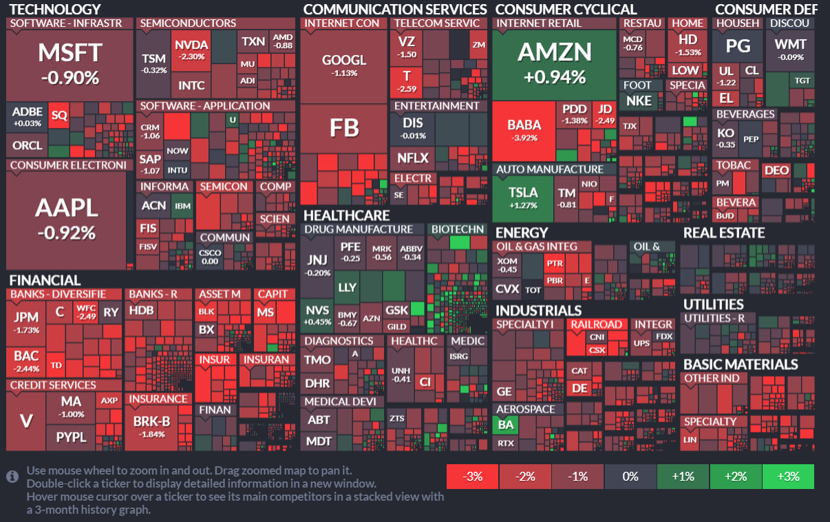 - DOW: 34421.93p (-259.86p, -0.75%)