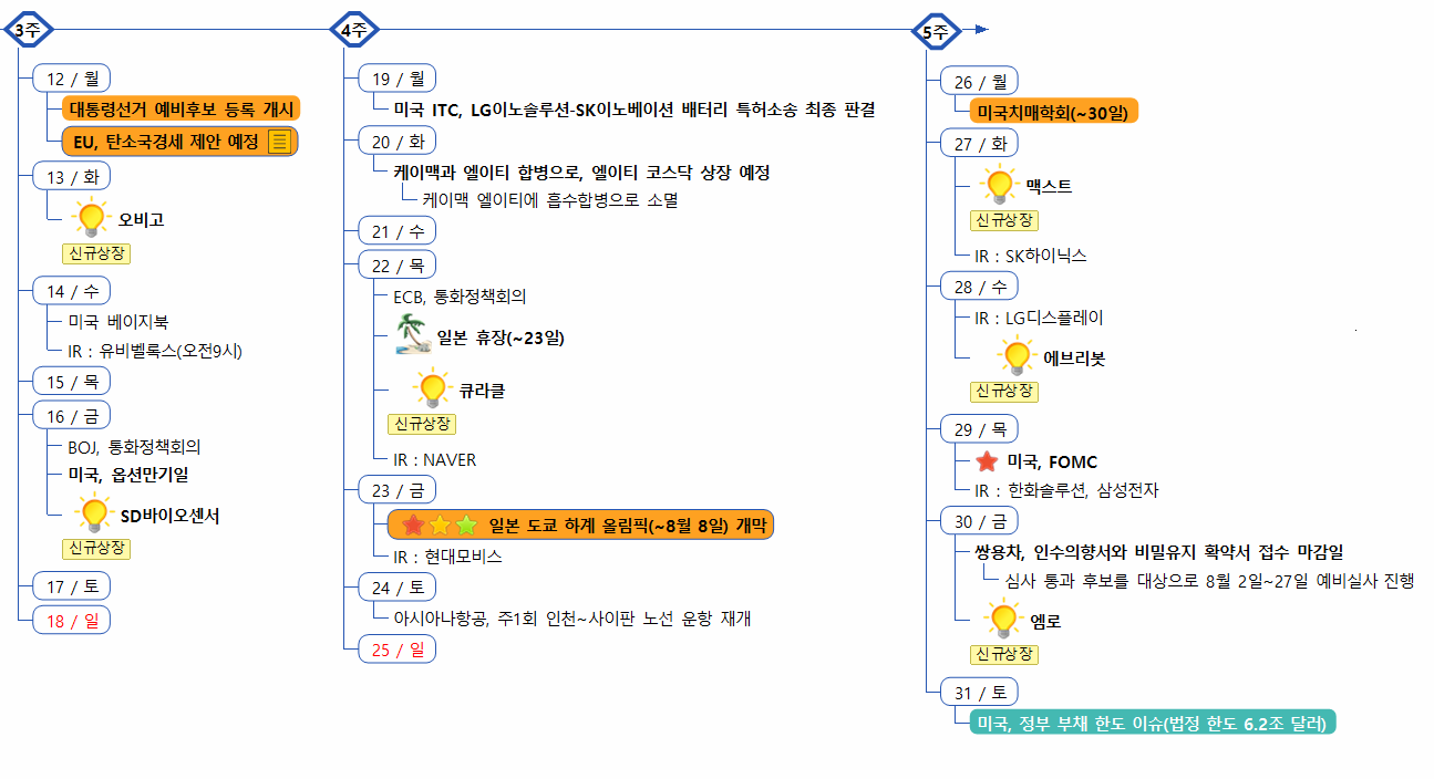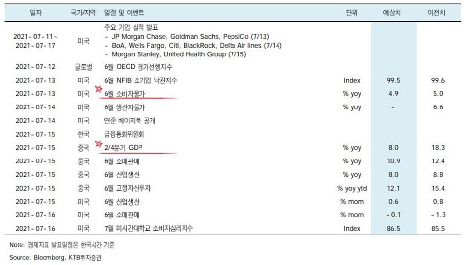 ■다음주 중국 중요 일정 : 중국 6월 수출입(13일), 3분기 GDP&6월 생산/소비/투자(15일)
