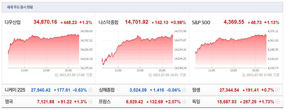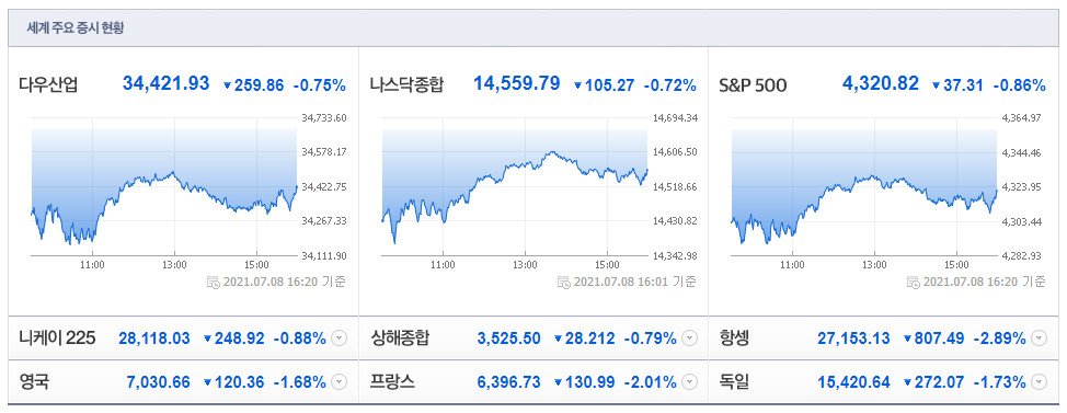 글로벌 주식시장 변화와 전망(7월 9일)