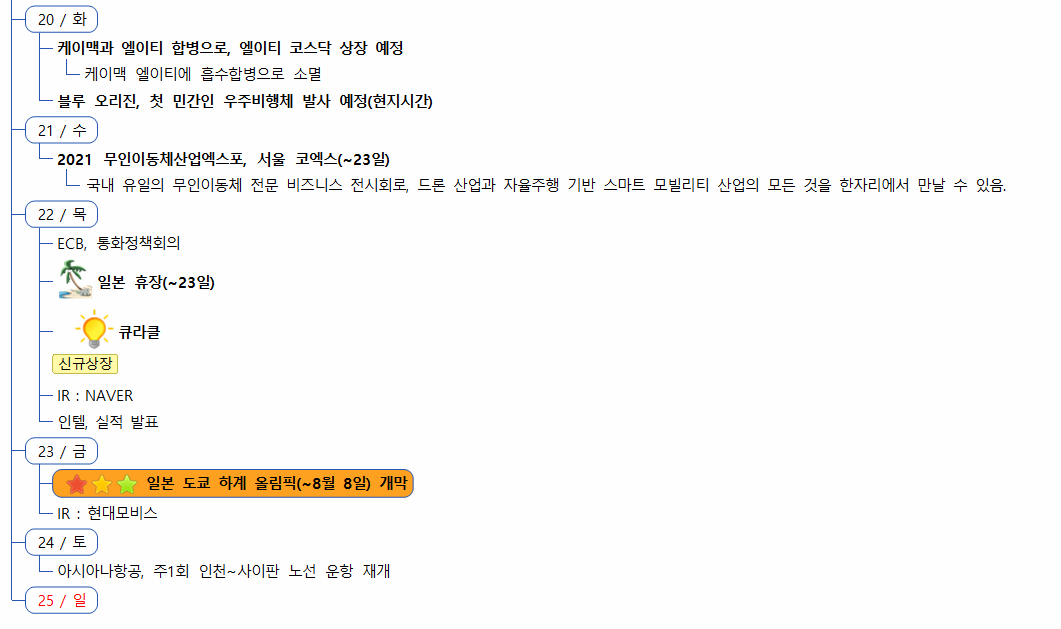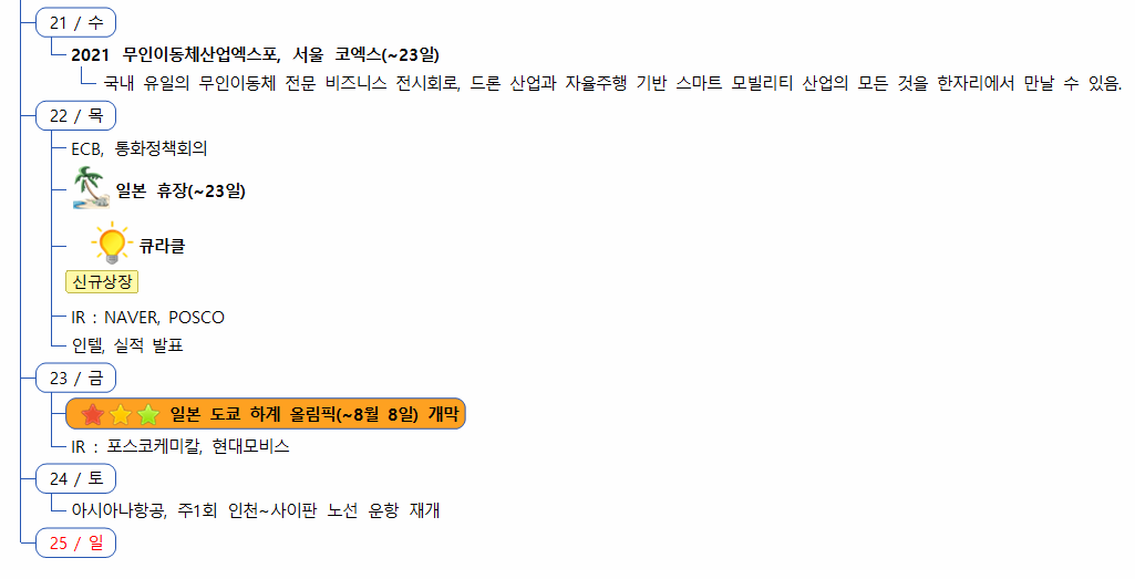 일부 국가들의 델타변이 확산과 일본 올림픽 무관중 이슈가 보도되며 전일 아시아/유럽증시 하락에 이어 미국도 전반적으로 약세시작하였습니다. 그러나 실적이 견조한 빅테크 중심으로 저가매수세가 지속유입되며 장마감싸지 하락폭을 일정부분 만회하며 마감하였습니자.