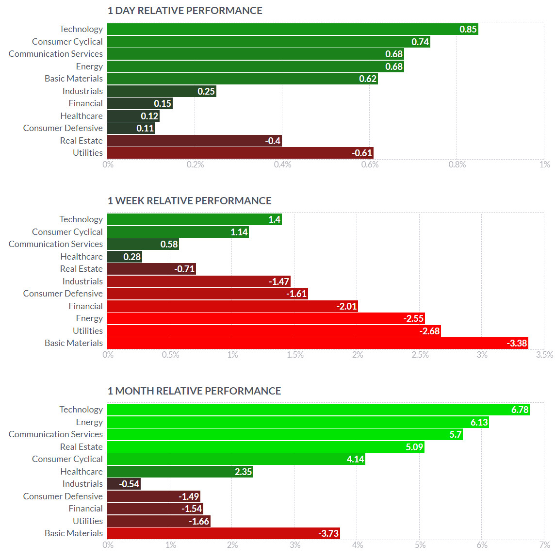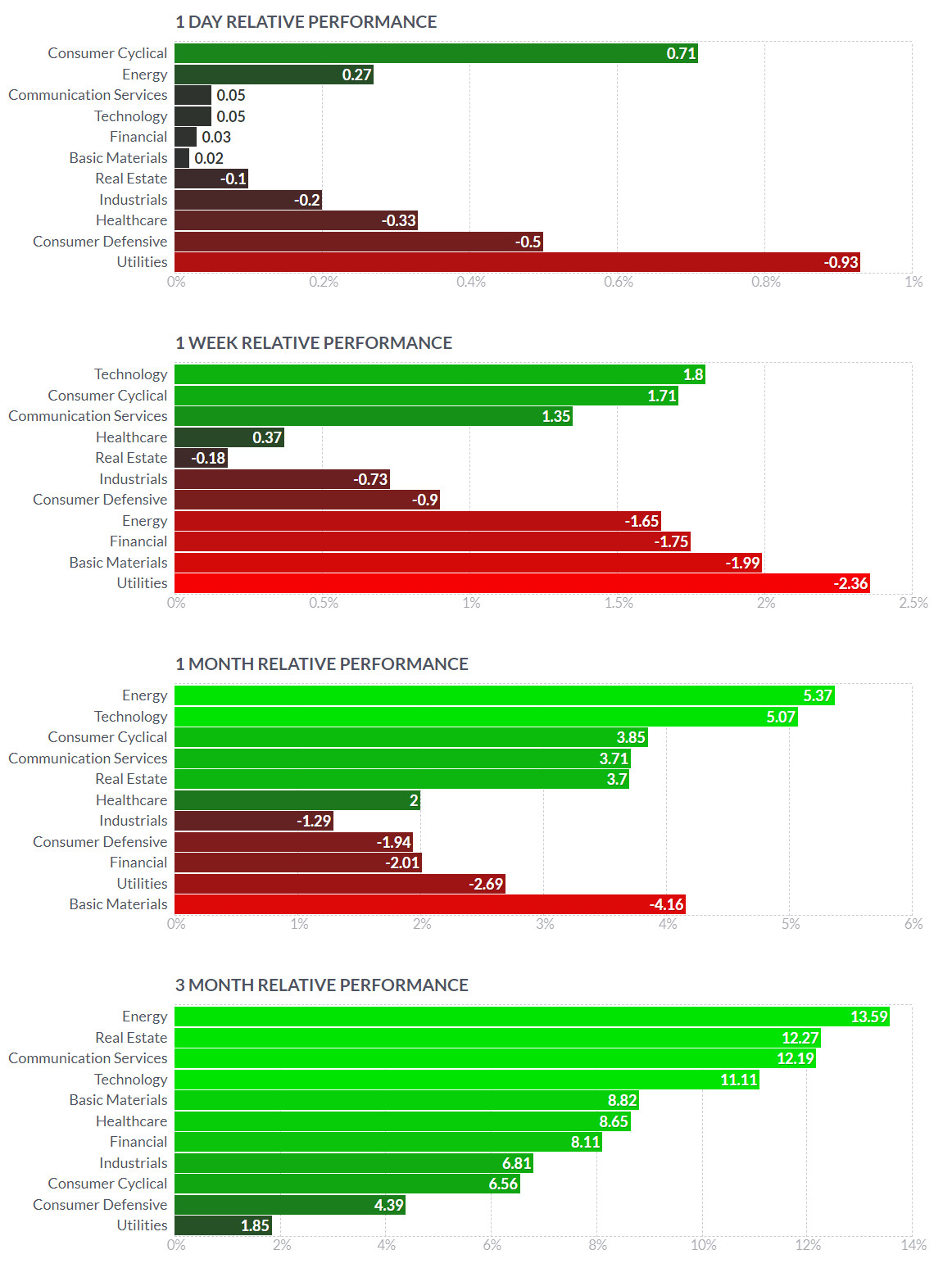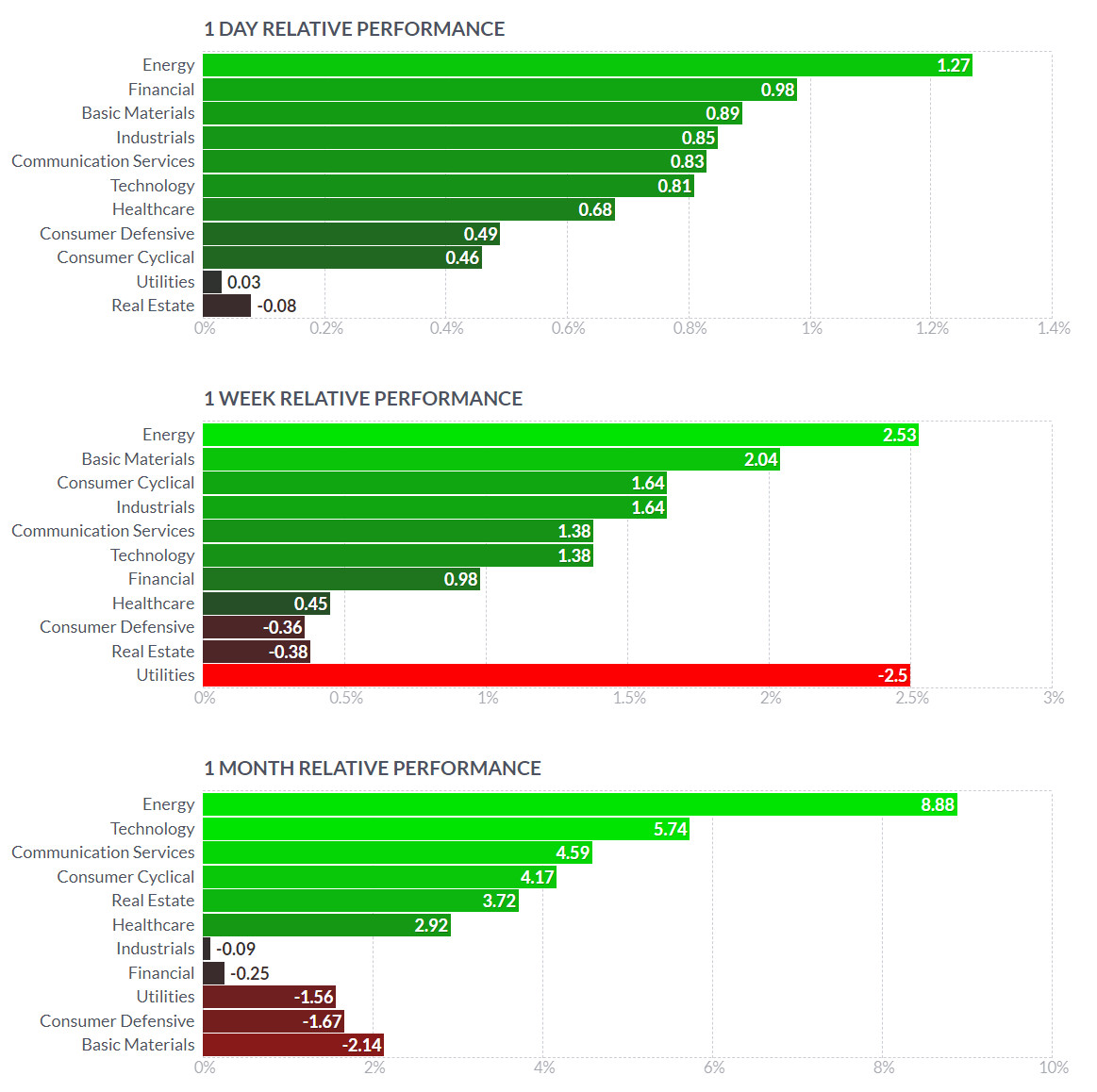 업종별로는 부동산(-0.5%), 유틸리티(-0.1%)를 제외한 금융(+1.2%), 에너지(+0.9%), 커뮤니케이션(+0.8%), 산업재(+0.8%) 등 전업종이 강세.