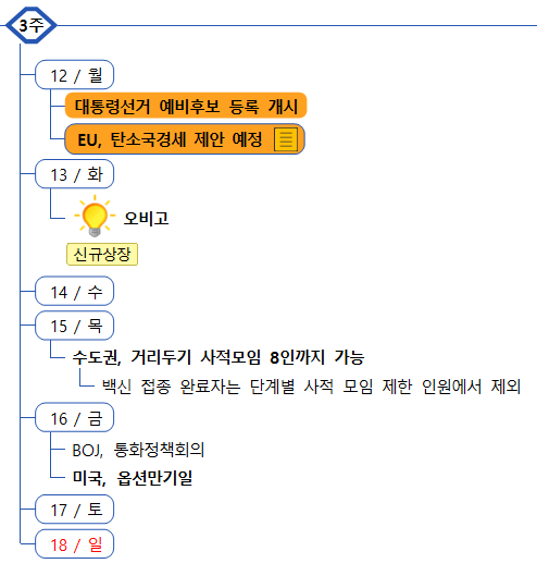 한국 증시는 연준의 정책 불확실성 소화, 바이든 행정부의 인프라 투자 기대감 재부각 등이 위험자산선호심리를 개선시키면서 신고가 경신을 시도할 것으로 예상.