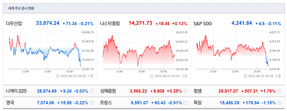 | 6월 23일(수) 해외마감시황, 장전 봐야할 주요뉴스 (0) | 2021.06.23 |