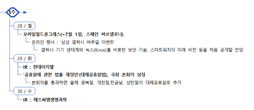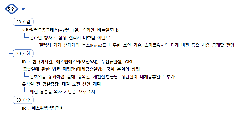 물론 빠른속도로 진행되는 순환매 장세에 대한 피로감, 지수 레벨에 대한 부담감이 공존하고 있는 것은 사실. 최근 주가가 단기에 급등했던 개별 테마주, 중소형주들의 주가 변동성에는 유의할 필요.