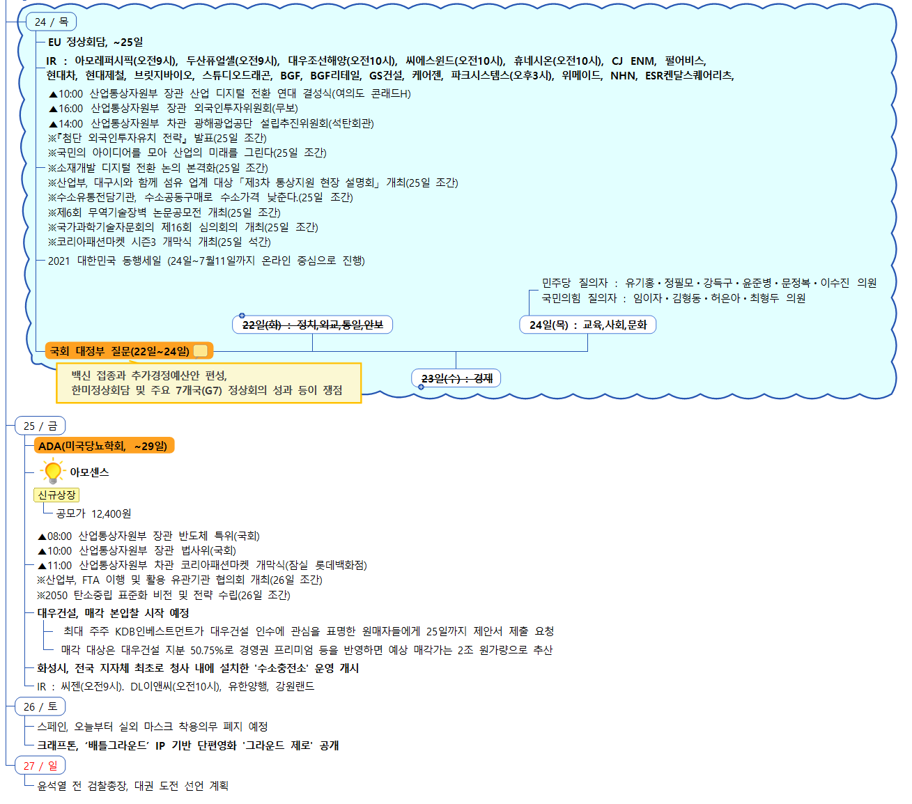 | 6월 24일(목) 해외마감시황, 장전 봐야할 주요뉴스 (0) | 2021.06.24 |