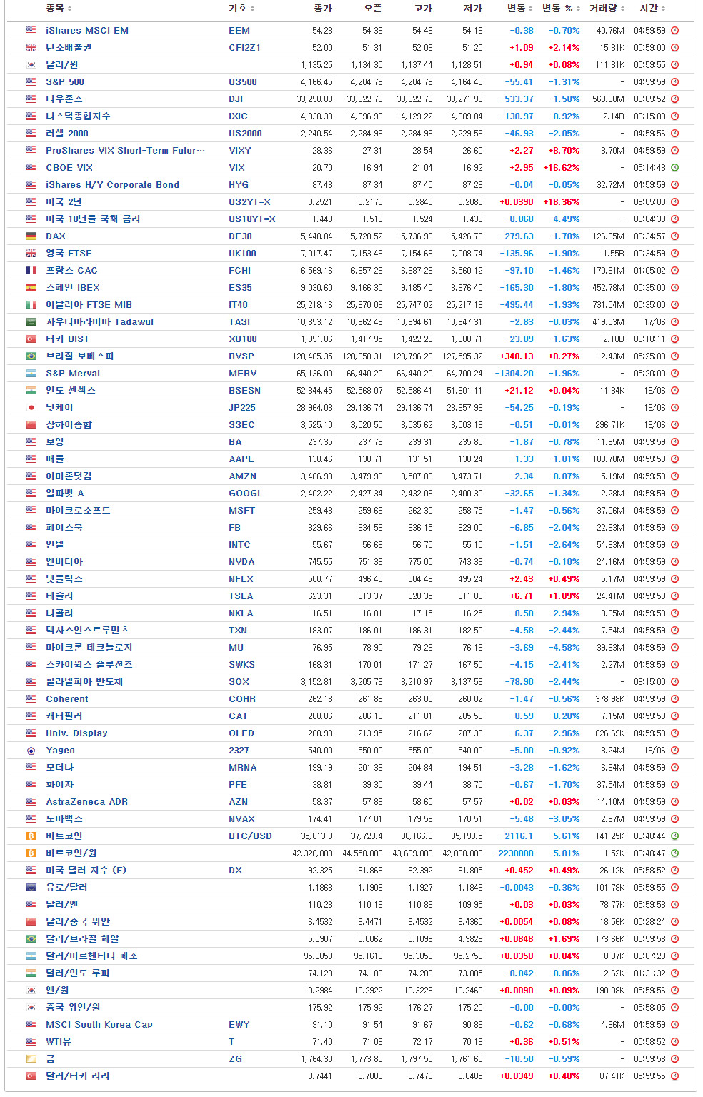 미 증시는 블라드 세인트루이스 연은 총재의 매파적인 발언 여파로 하락 출발. 더불어 2분기 어닝시즌을 앞두고 실적 피크아웃 논란이 부각 된 점도 낙폭 확대 요인. 여기에 코로나 델타 변이 바이러스에 대한 우려가 확산된 점도 투자심리 위축 요인. 장 마감 직전 선물옵션 만기일 영향에 따른 수급적인 요인으로 낙폭 확대하며 마감(다우 -1.58%, 나스닥 -0.92%, S&P500 -1.31%, 러셀2000 -2.17%)