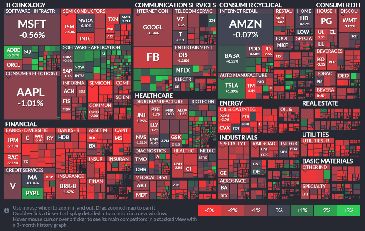 다우 -1.58%, 나스닥 -0.92%, S&P 500 -1.31%