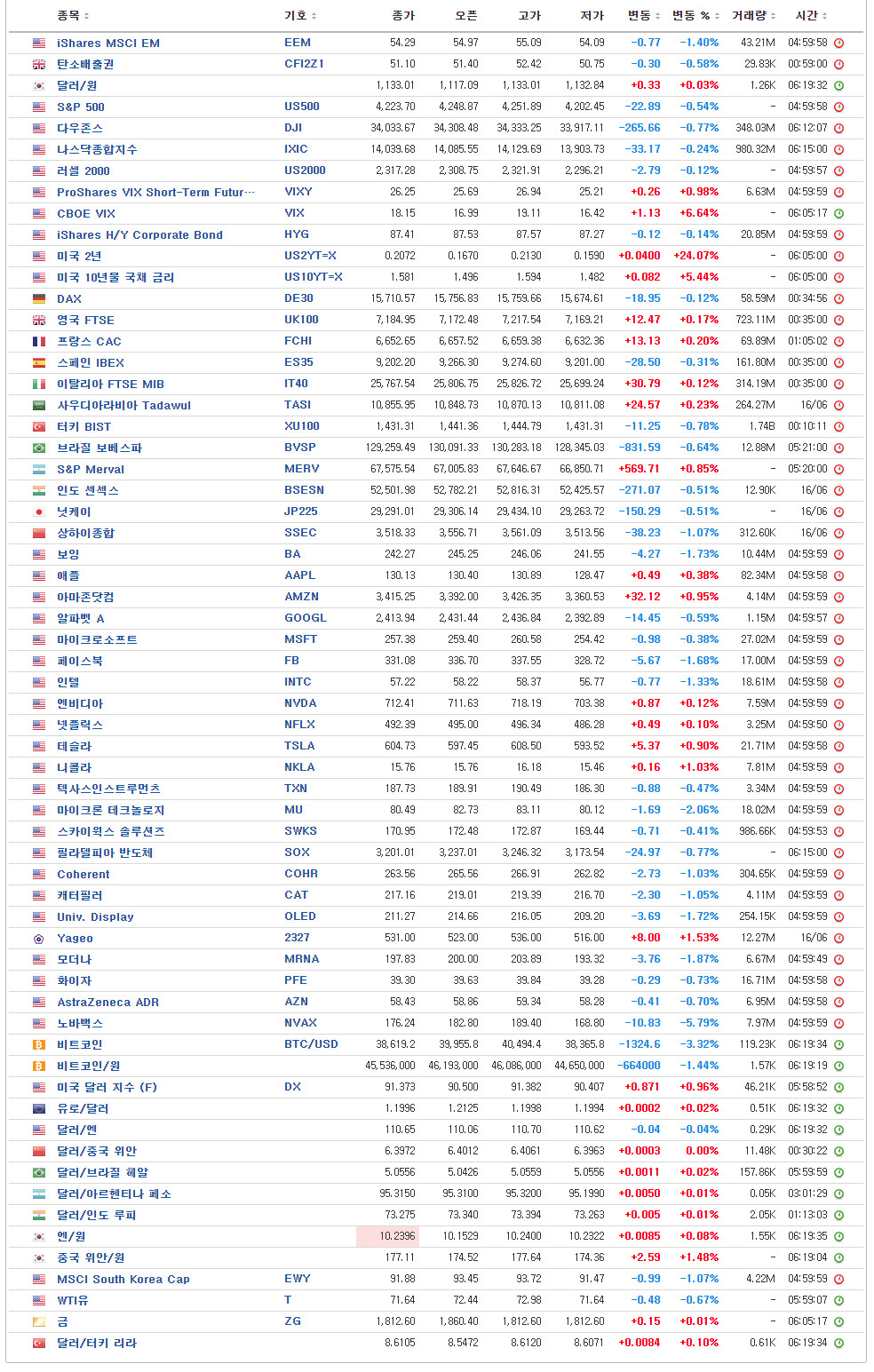 필라델피아 반도체 지수는 화요일에 이어 수요일에도 하락. 화요일에 하락한 이유는 말레이시아 등 동아시아 지역에서의 코로나 확산에 대한 우려 때문. 수요일에 하락한 이유는 연준이 FOMC에서 조기 금리 인상을 시사했기 때문. 첫 금리 인상 시점을 기존의 2023년 이후에서 2023년으로 앞당김. 2023년 말까지 금리는 2차례 0.5%p 오를 것이라는 전망. 미국 10년물 명목 금리는 한때 1.589%까지 상승. 필라델피아 반도체 지수는 장중에 3,173선까지 하락했다가 장 마감 직전에 낙폭을 일부 만회하며 전일 대비 -0.77% 수준인 3,201선으로 마감