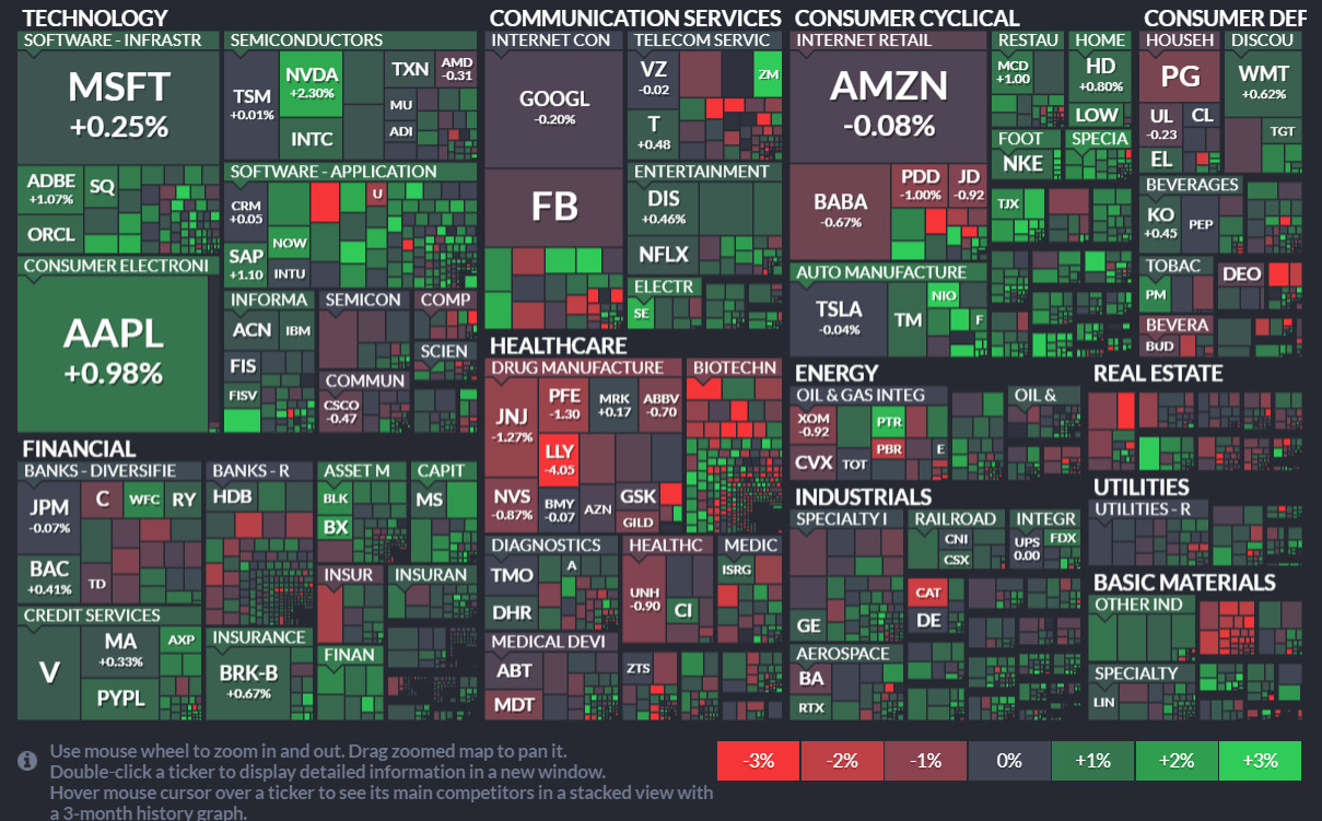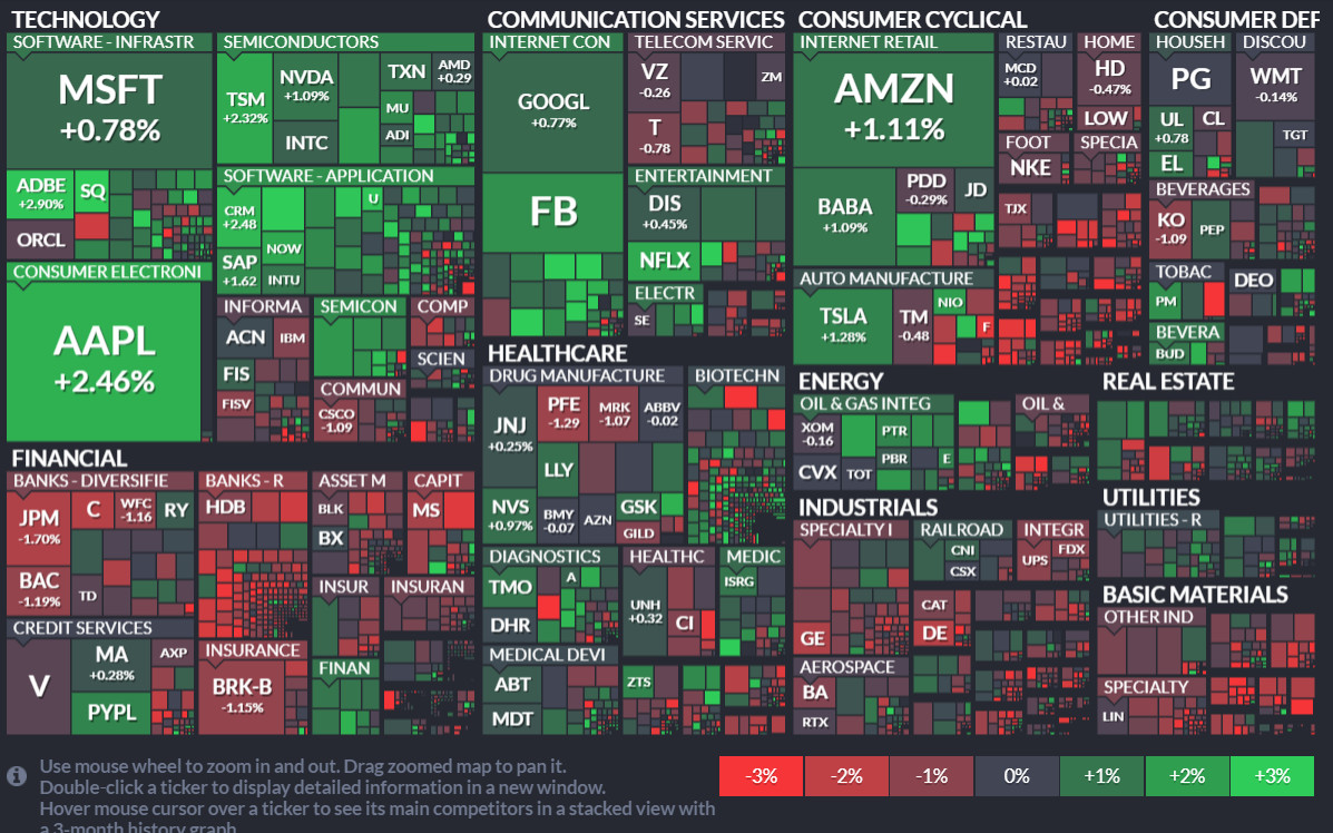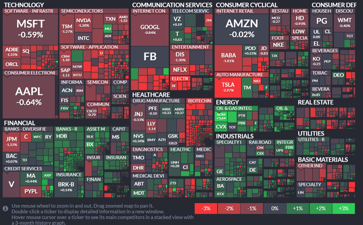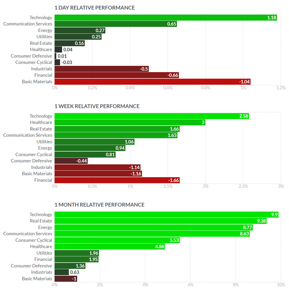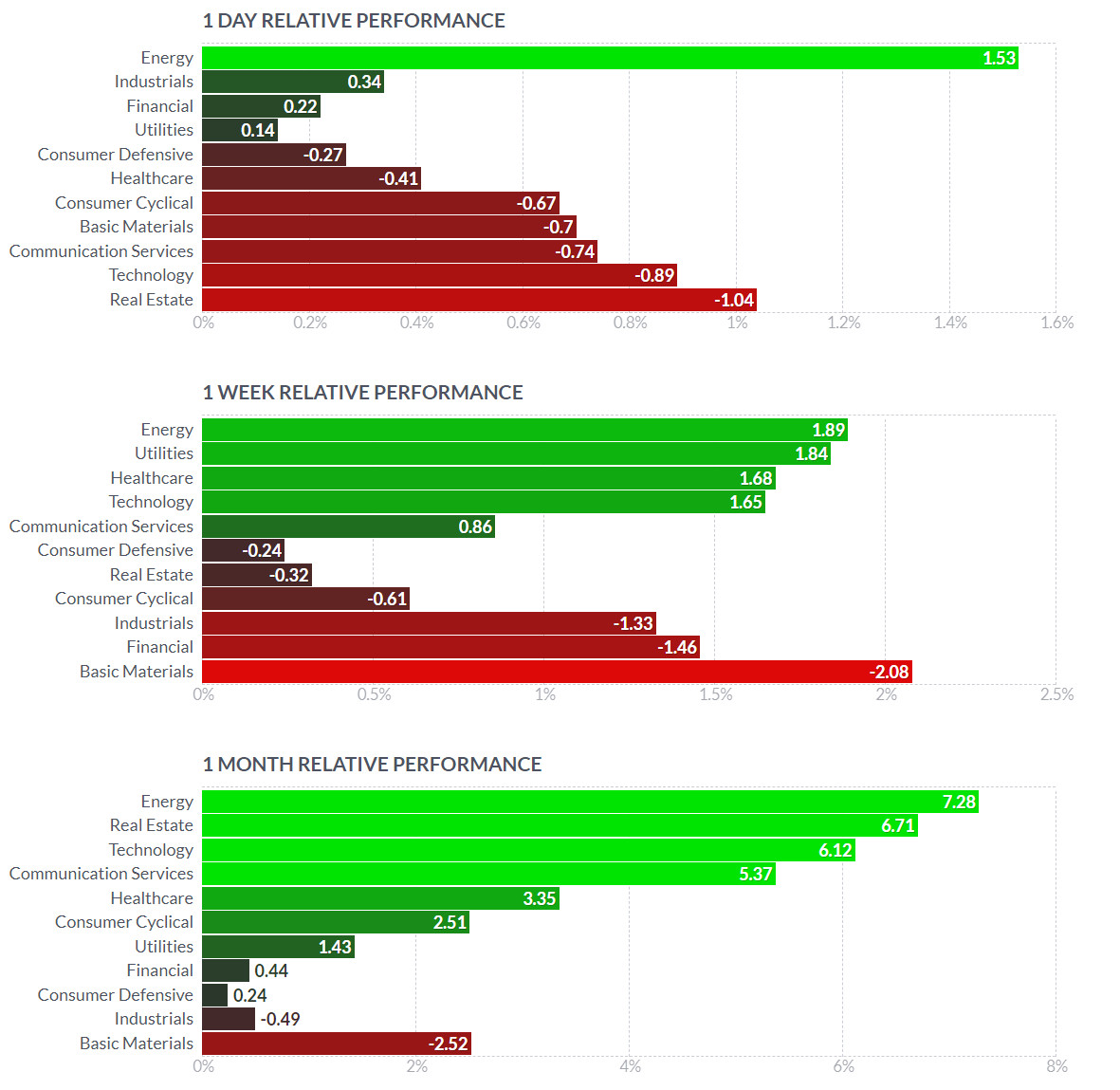 업종별로는 에너지(+2.1%), 산업재(+0.5%), 유틸리티(+0.4%) 등이 강세, 부동산(-1.0%), 기술(-0.6%), 커뮤니케이션(-0.5%) 등이 약세