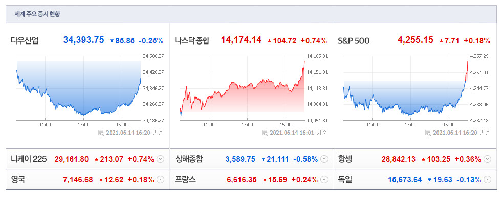 | 6월 14일(월) 해외마감시황, 장전 봐야할 주요뉴스 (0) | 2021.06.14 |