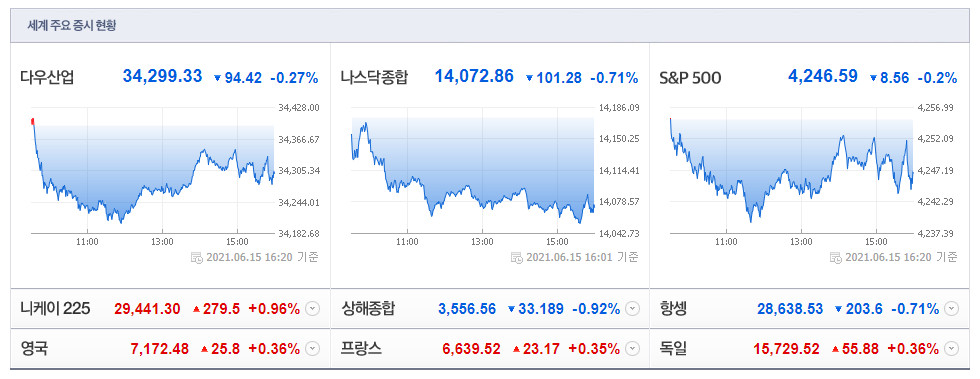 | 6월 15일(화) 해외마감시황, 장전 봐야할 주요뉴스 (0) | 2021.06.15 |