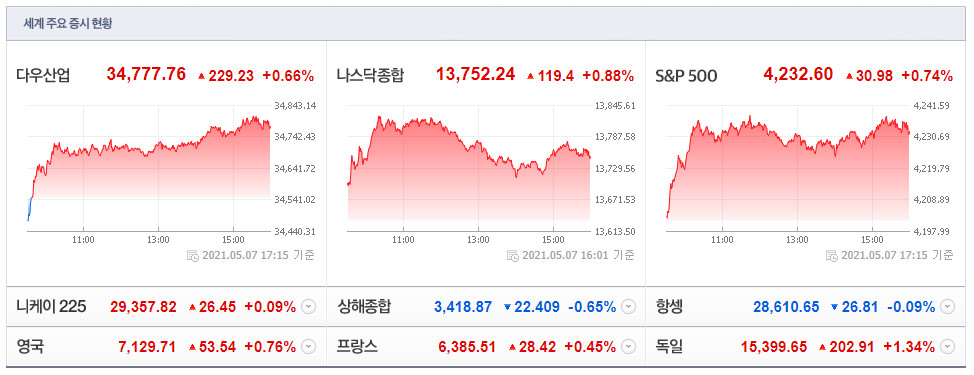 글로벌 주식시장 변화와 전망(5월 14일)