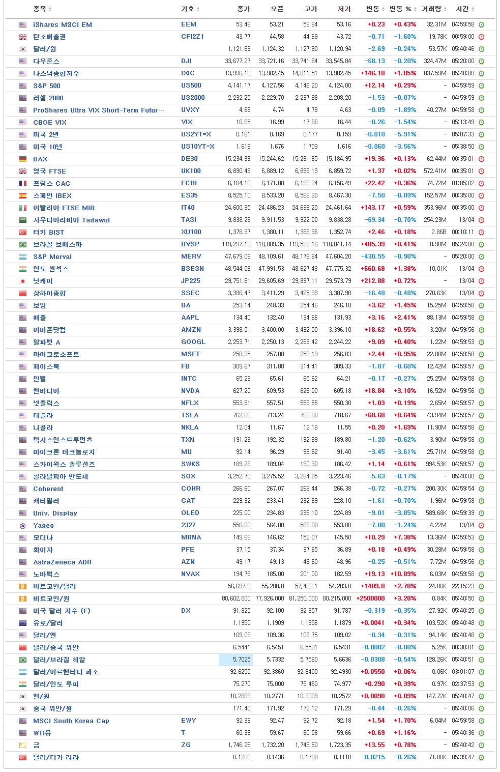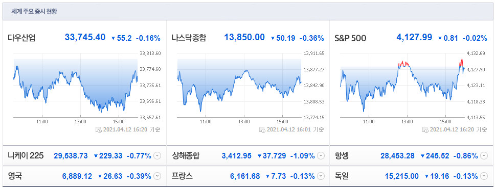 | 4월 11일(일) 해외마감시황, 주요뉴스 (1) | 2021.04.11 |