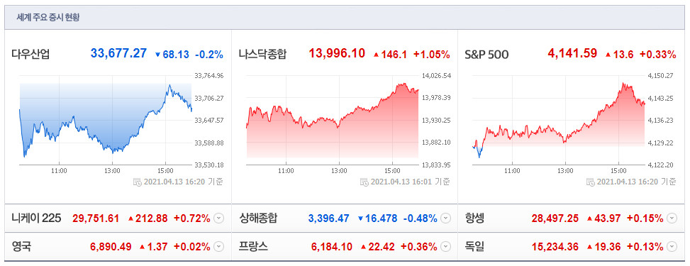| 4월 13일(화) 해외마감시황, 장전 봐야할 주요뉴스 (0) | 2021.04.13 |