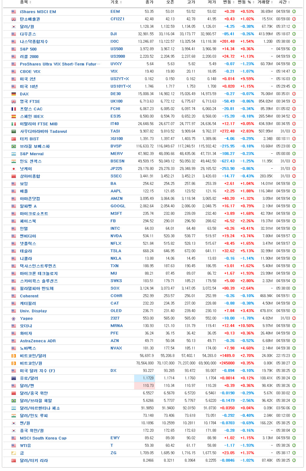 | 3월 31일(수) 해외마감시황, 장전 봐야할 주요뉴스 (1) | 2021.03.31 |