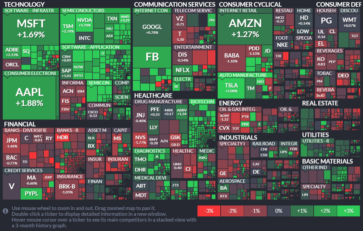 - 다우: +0.5%, S&P500: +1.2%, 나스닥: +1.8%