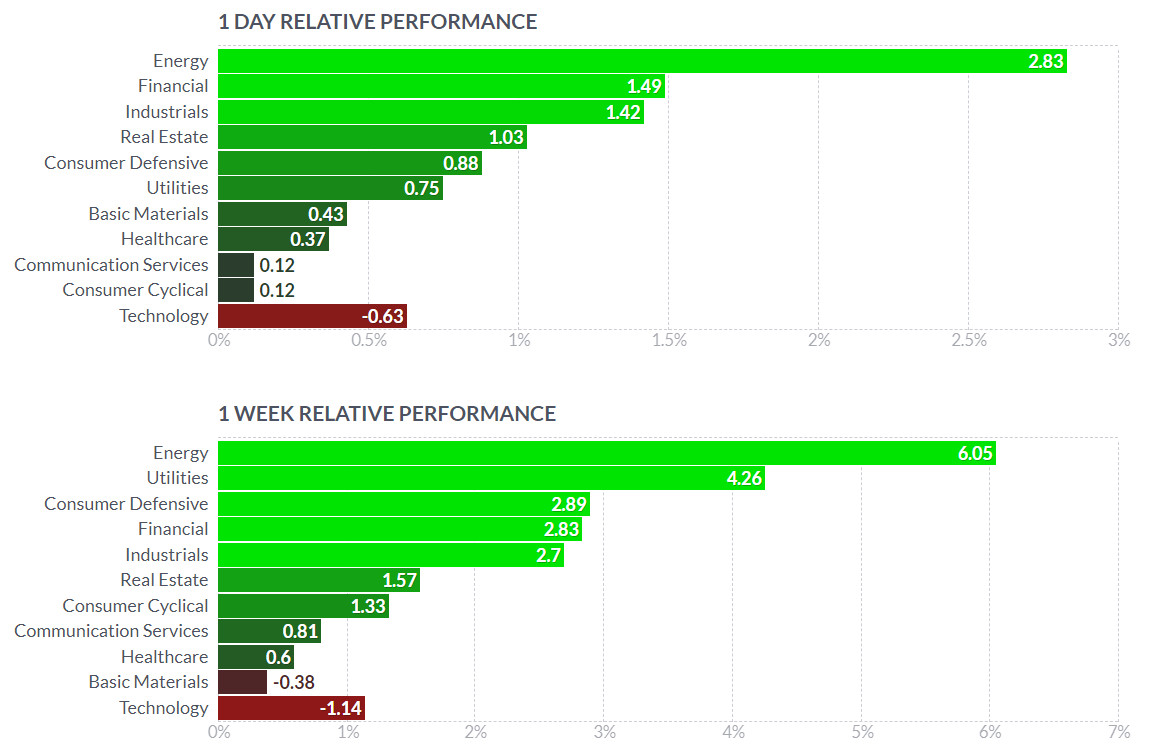 - 약세: 기술(-0.40%) 업종만 약세