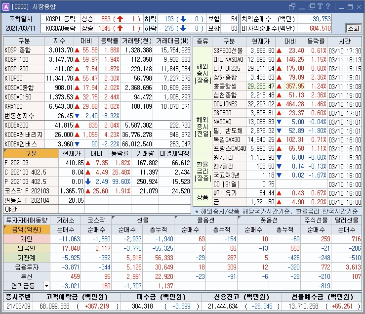 | 3월 10일(수) 해외마감시황, 장전 봐야할 주요뉴스, 관심레포트 : 마감시황 (1) | 2021.03.10 |