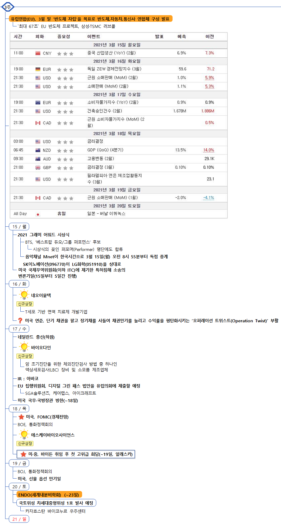 | 3월 15일(월) 해외마감시황, 장전 봐야할 주요뉴스 : 마감시황 (0) | 2021.03.15 |