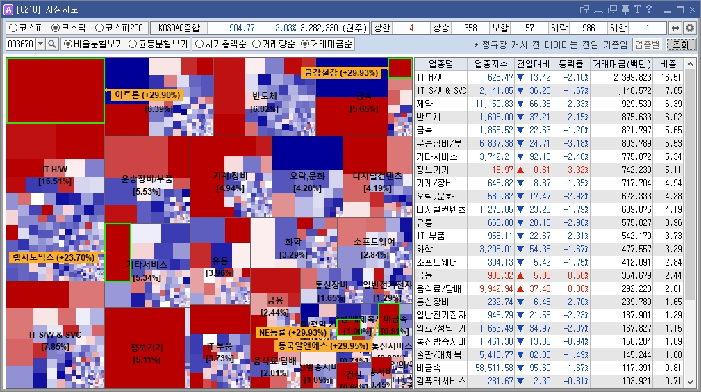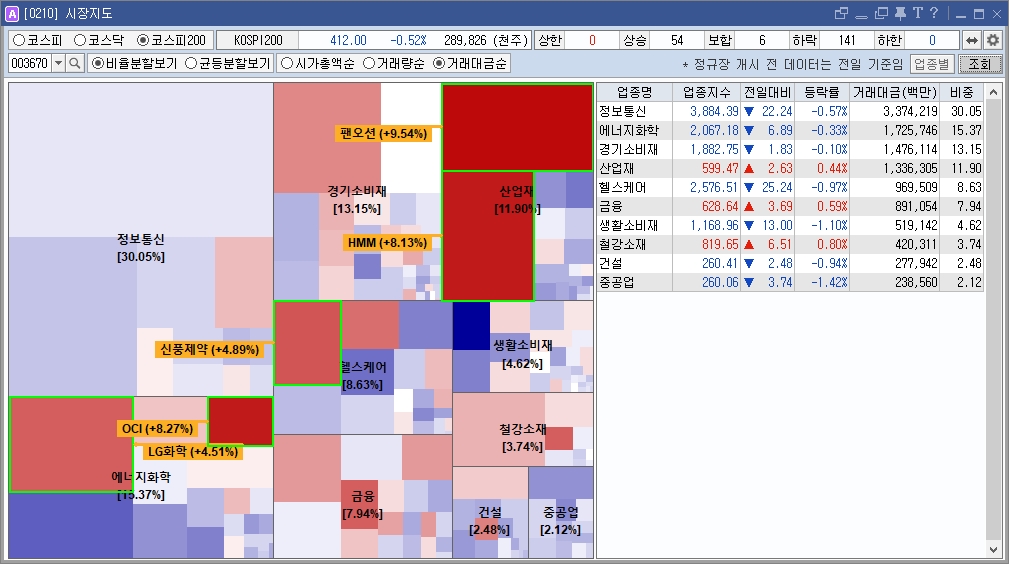 - 약세: 유통업(-1.85%), 의약품(-1.81%), 건설업(-1.39%) 등