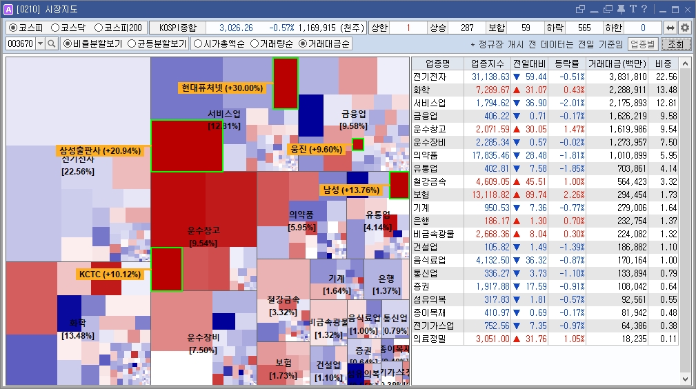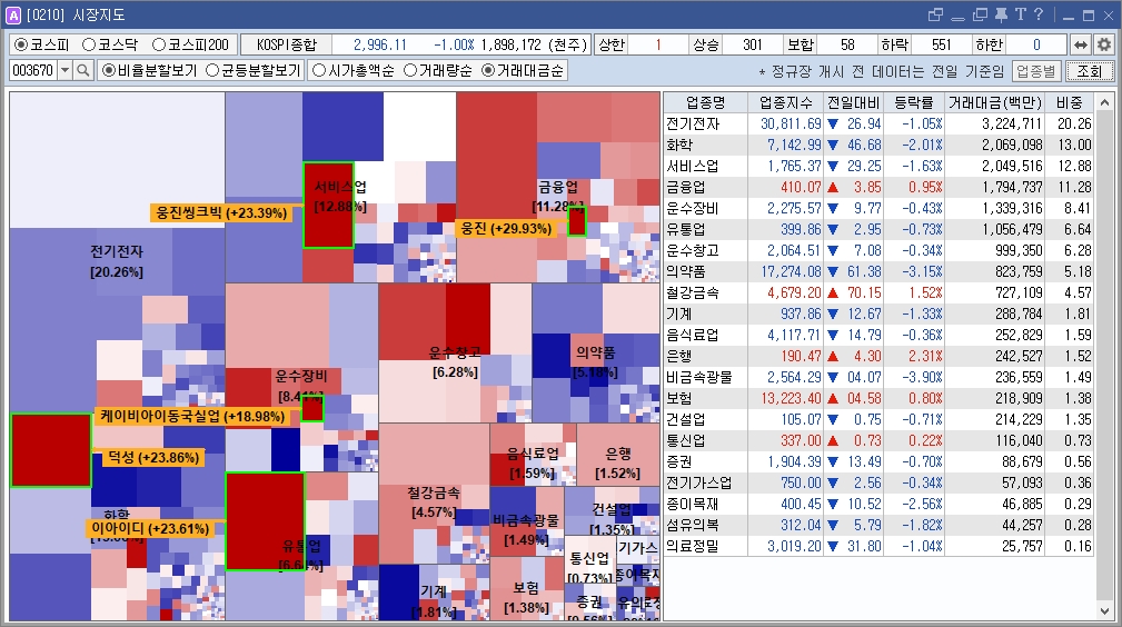 - 강세: 보험(+2.26%), 운수창고(+1.47%), 의료정밀(+1.05%) 등