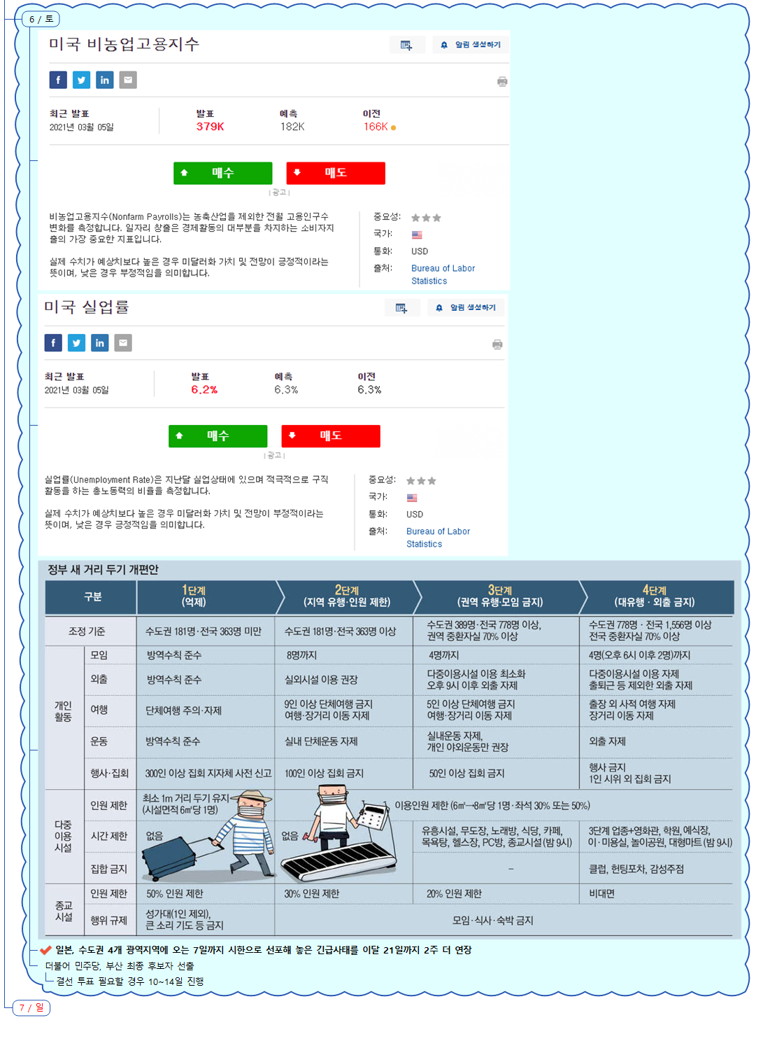 - 6일 미국 상원에서는 1,400달러 현금 지급안이 포함된 1.9조달러 부양책을 통과시켰으며, 수정안이었던 만큼 9일 하원에서 재표결을 거친 뒤에 14일 이전에 최종 서명 및 발효될 예정