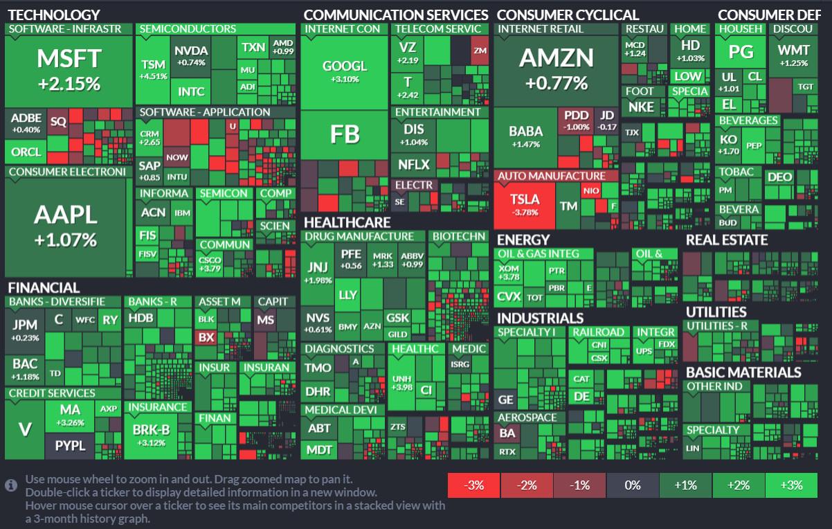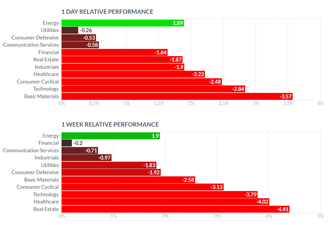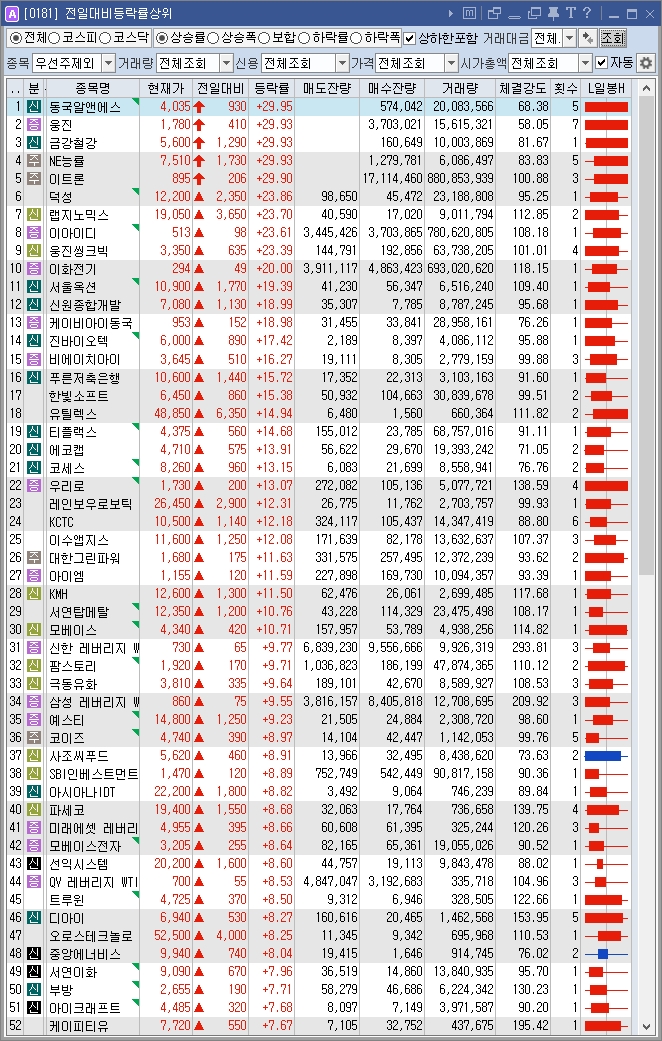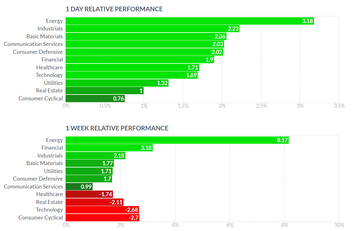 - 에너지(+3.87%), 산업재(+2.39%), 커뮤니케이션(+2.375) 등 전 업종이 강세