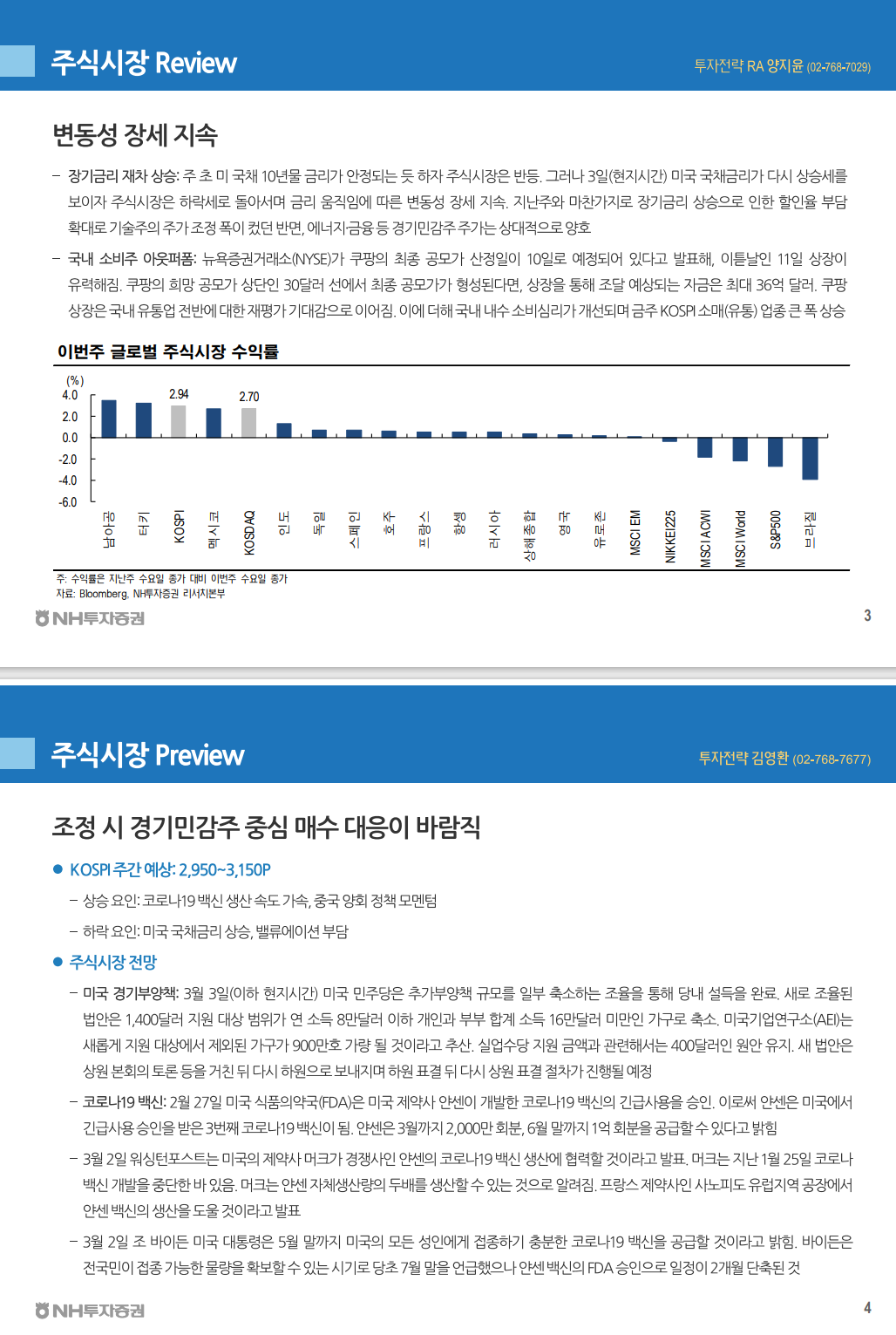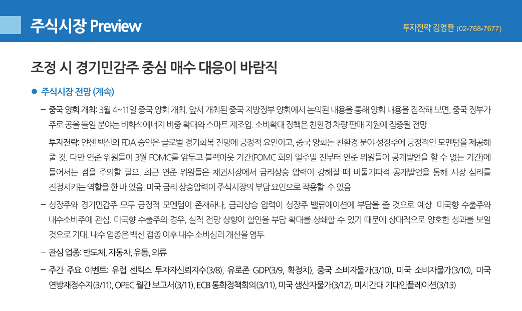[3/8 전주 금요일(5일) 국내 시황, 케이프투자증권 한지영(02-6923-7349)]