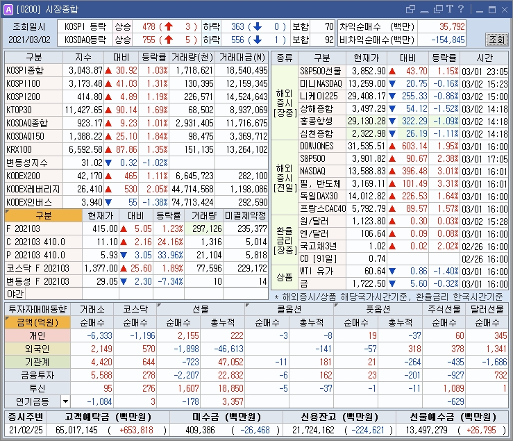 | 3월 3일(수) 해외마감시황, 장전 봐야할 주요뉴스, 관심레포트 : 마감시황 (0) | 2021.03.03 |