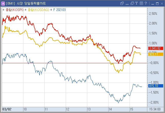 - 코스닥: -2,287억원/-1,576억원/+3,982억원