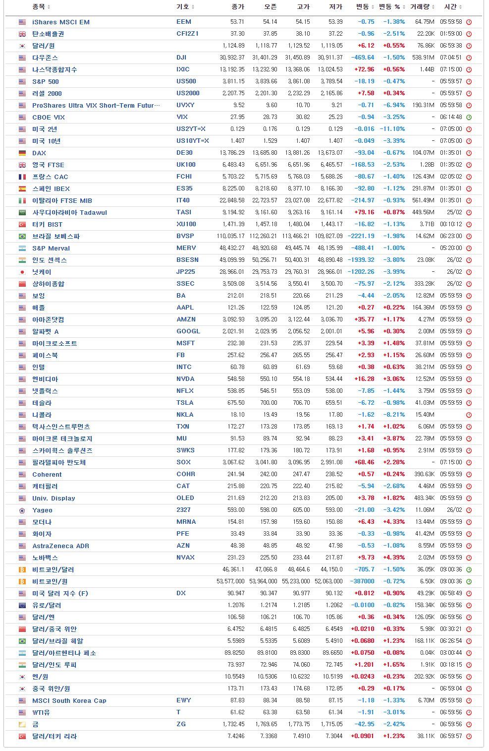 | 2월 26일(금) 해외마감시황, 장전 봐야할 주요뉴스, 관심레포트 : 마감시황 (0) | 2021.02.26 |