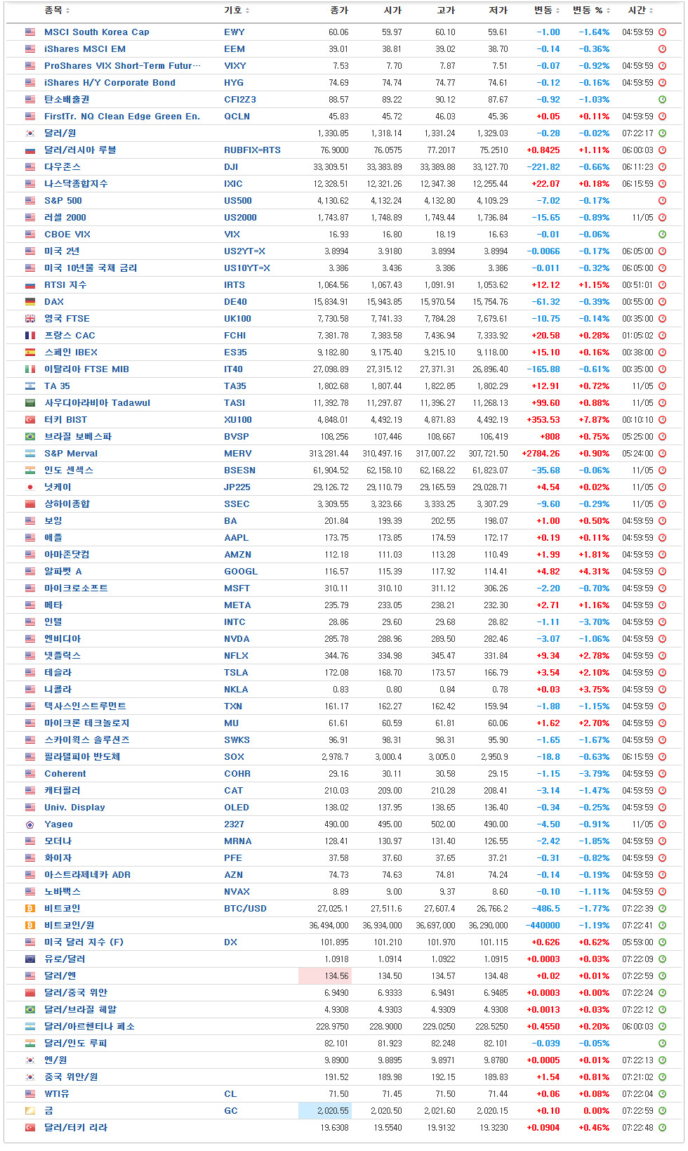 - 달러/엔: 134.58 (+0.24, +0.18%)