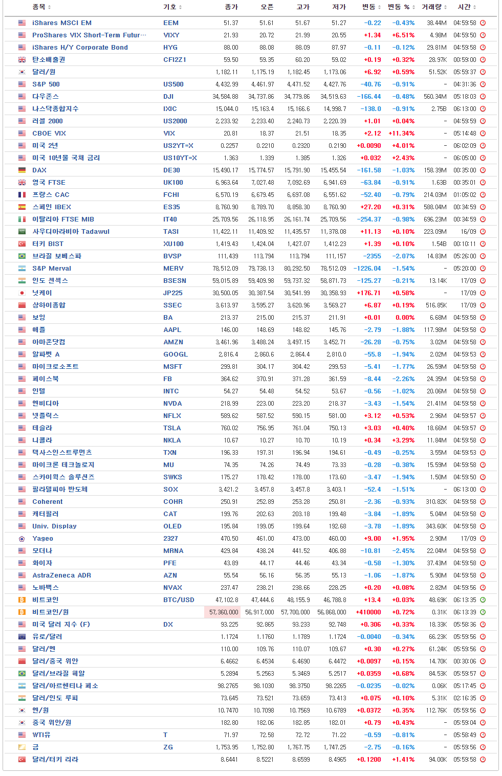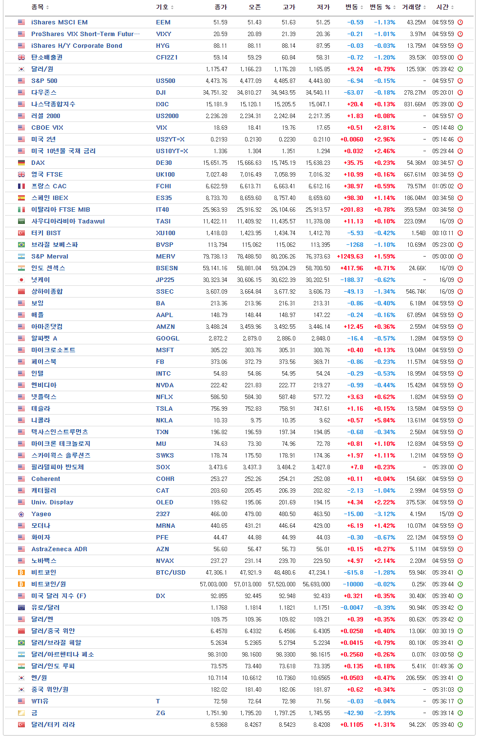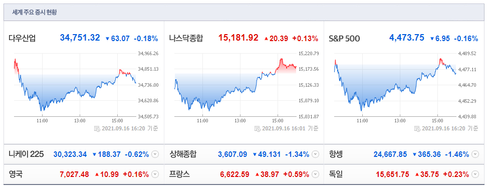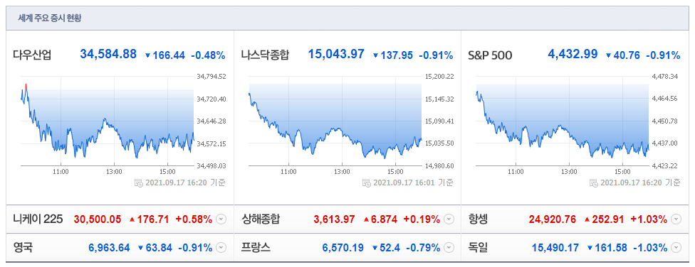 [글로벌시장 지표 / 9월 17일 오전 6시 현재]