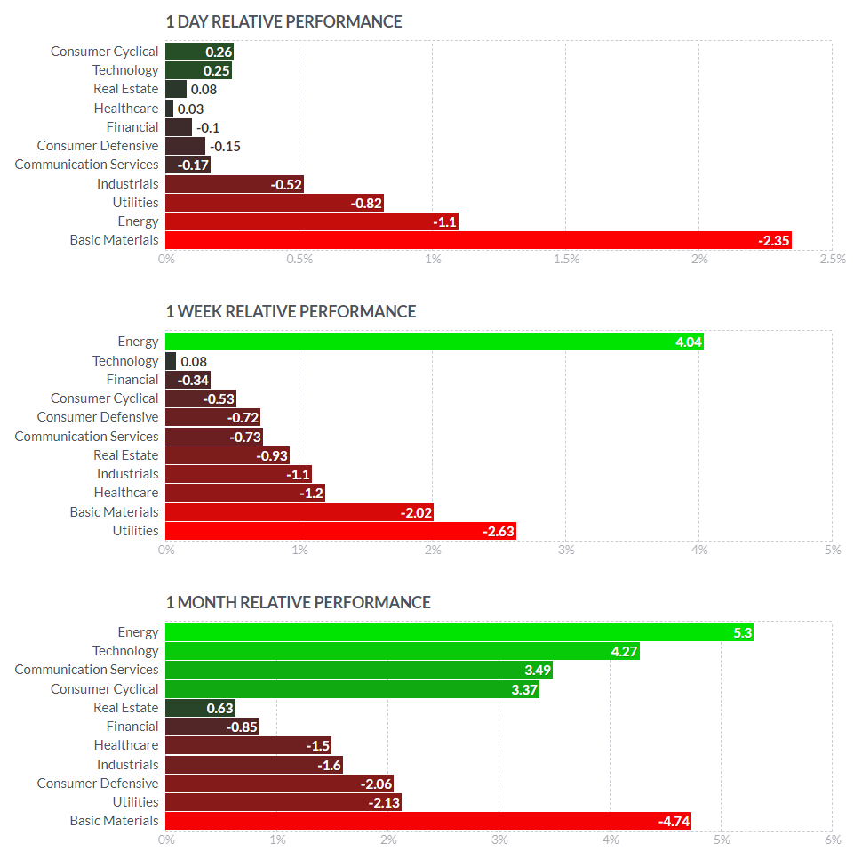 섹터별 ETF에서는 자유소비재(XLY/+0.5%), 부동산(VNQ/+0.1%)이 상승, 산업재(XLI/-0.7%), 에너지(XLE/-1.1%), 소재(XLB/-1.1%)하락 마감. 금일 8월 소매판매 경제지표가 전월대비 0.7% 상승 발표. 이어 포드(F/+1.5%)는 전기 자동차 생산을 위해 2억 5천만달러 투자할 예정이며 매년 8만대와 450명 추가 고용 소식에 상승 마감. 개별 주식으로는 태피스트리(TPR/+1.5%)와 닥터호튼(DHI/+1.5%)이 상승 견인. 반면, 은과 구리를 포함한 금속 가격이 하락하면서 프리포트-맥모란(FCX/-6.59%)이 소재(XLB) 섹터 하락 견인.