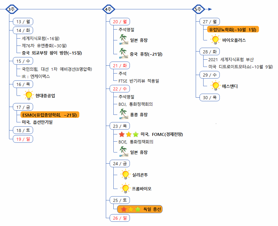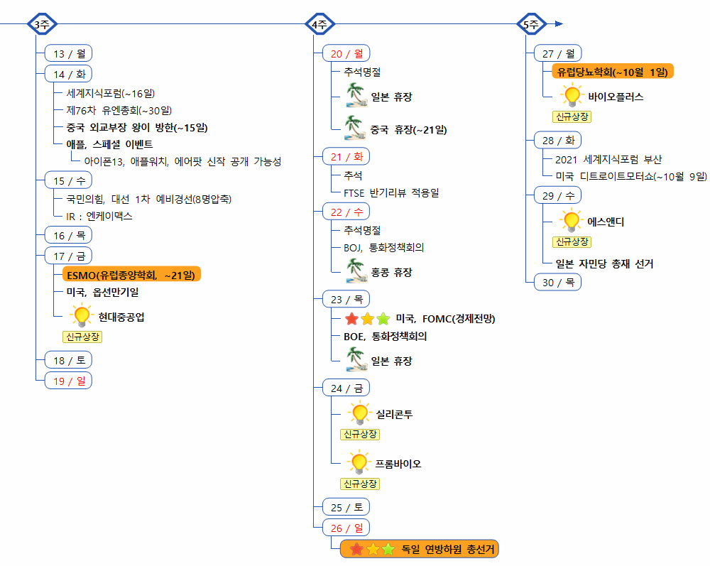 | 9월 13일(월) 증시캘린더 / 해외마감시황 (1) | 2021.09.13 |