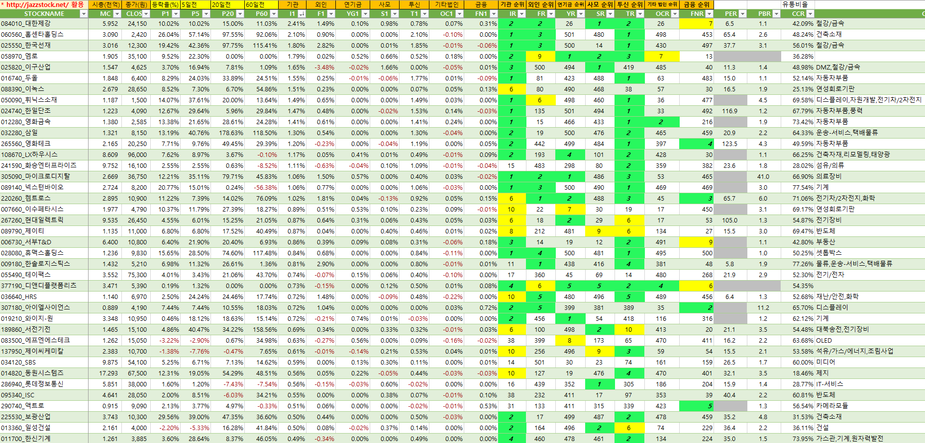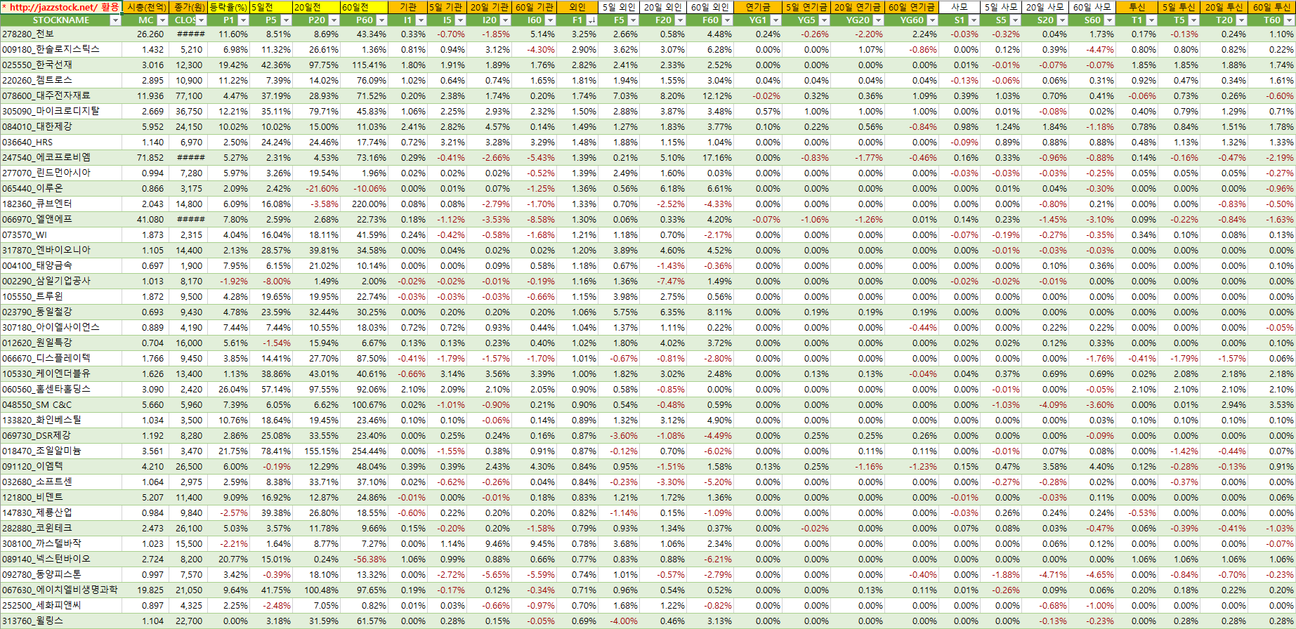 | 분류 | 티커 | 현재가 | 등락률 | t신호 | 수익률 | ||