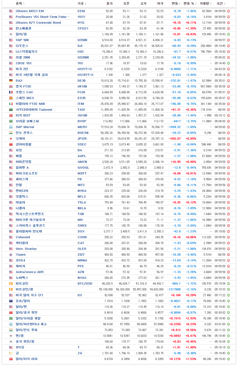 U.S. Market Closing – 05:00 기준