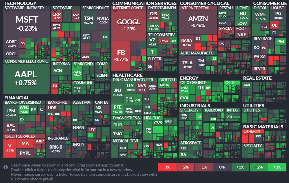 오늘 증시는 주요지수 모두 상승 출발하였습니다. 그러나 오후들어 빅테크중심으로 차익실현 매물이 나오며 나스닥은 장중 하락전환도 하였으나 장마감 직전까지 지속적인 대기저가매수가 유입되며 결국 다시 지수를 끌어올리며 주요지수 모두 상승세로 마감했습니다. 마치 빅테크를 일부 차익실현하고 이돈으로 덜오른 종목들을 채워넣는 모양새였습니다.