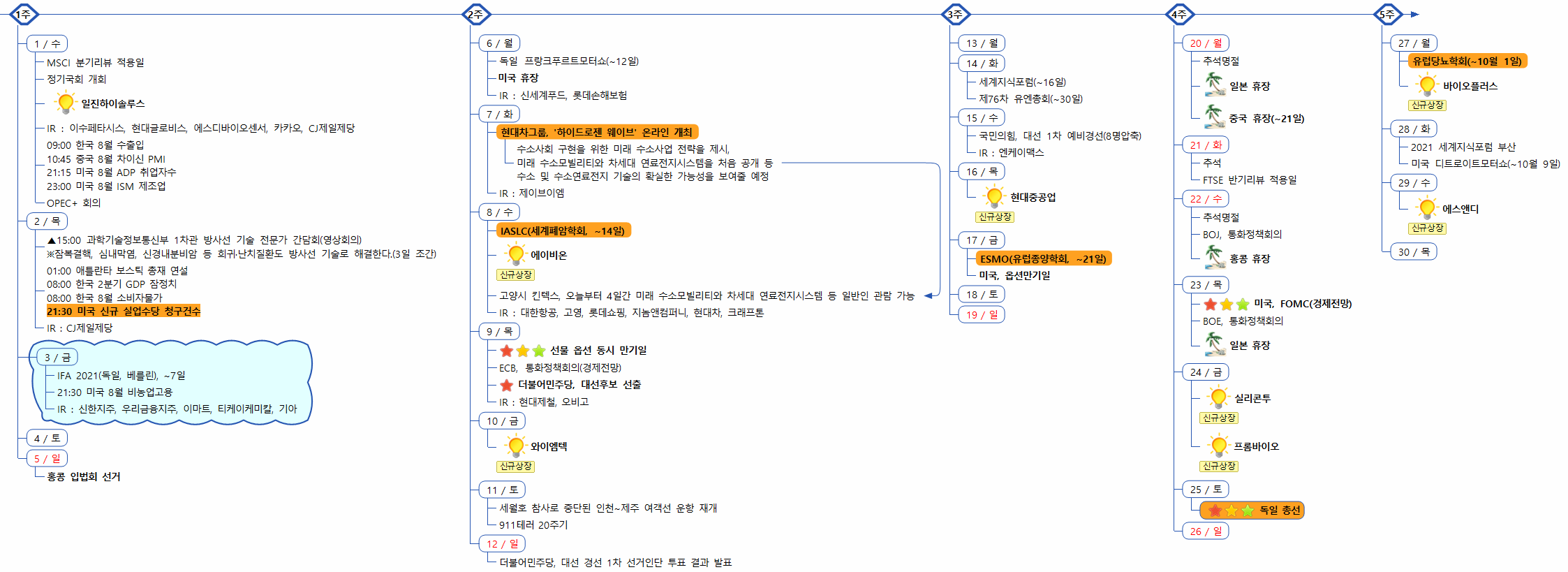 1) 증시캘린더는 개인적으로 관련된 소식을 확인후 작성한 일정이라 변동 또는 오류의 소지가 있습니다.