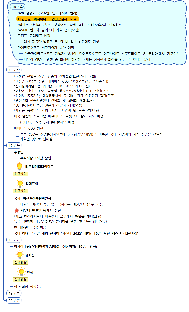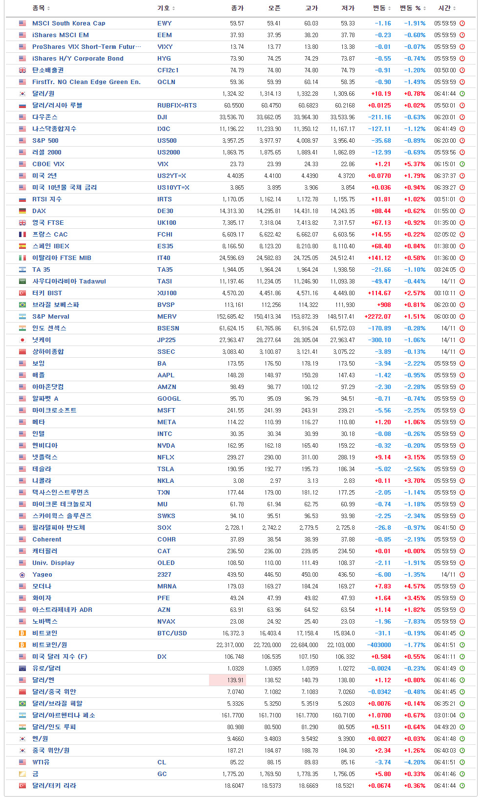 11월 15일(화) 증시캘린더 / 해외마감시황